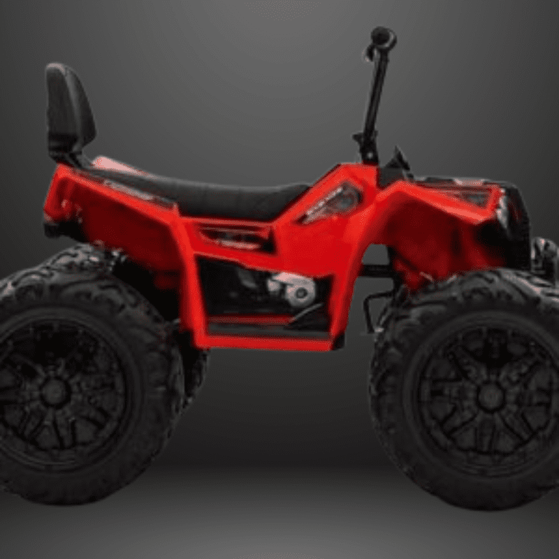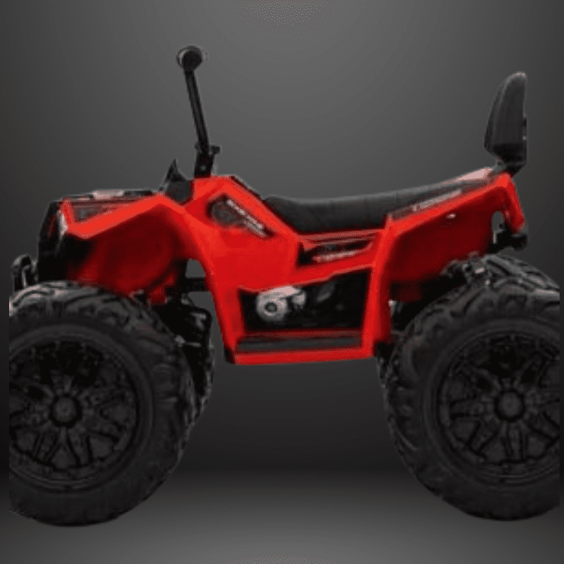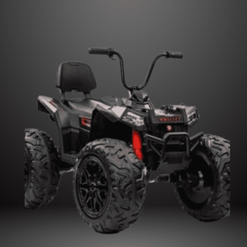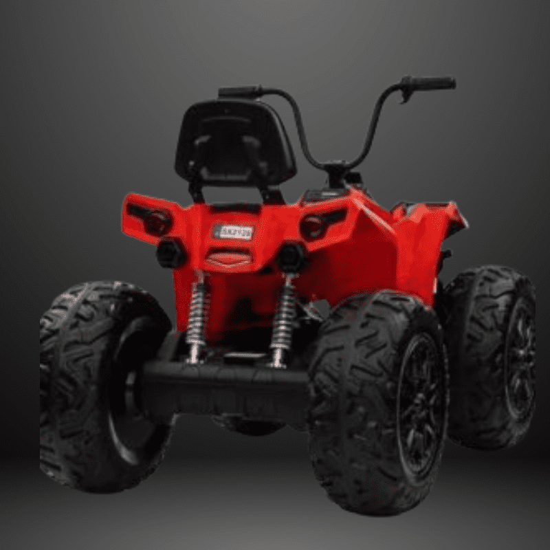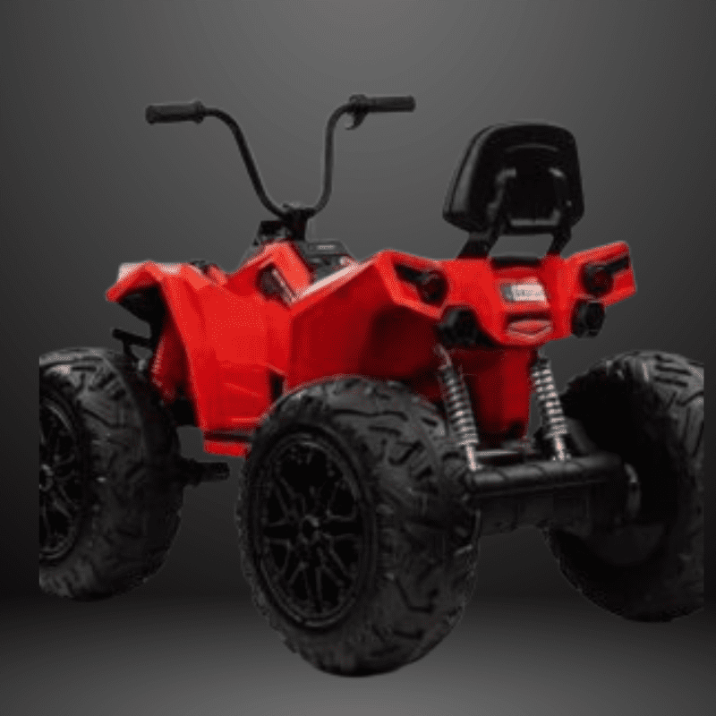 24V kids’ ATV with 4×4 drive for smooth traction across grass, beaches, cement, and rubber tracks.