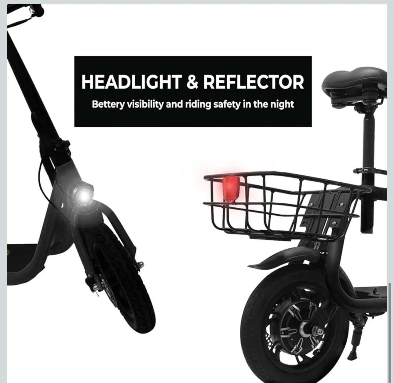 The 36V R1 Phantom Gogo Foldable Scooter is a compact, sit-down electric scooter built for comfort and portability. Powered by a 36V rechargeable battery and efficient motor, it features a padded seat, strong brakes, and a foldable design for daily commuting or leisure riding.
