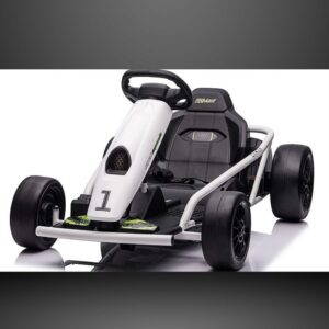 The 24V Drifting Go-Kart is built for kids who love speed and drifting thrills. Powered by a 24V dual-motor system, it offers speeds up to 12 mph, realistic drifting tires, and a racing seat with safety features for secure fun.